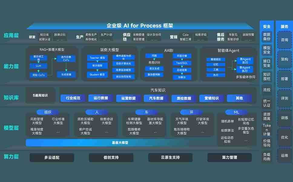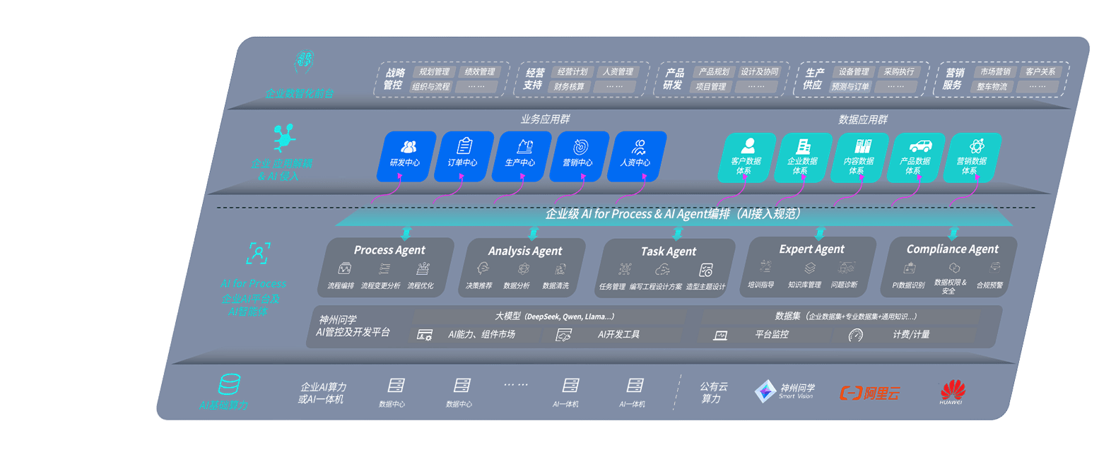 97国际问学智车解决方案是一套基于AI技术的汽车行业智能化系统,,,覆盖从底层算力到顶层AI应用的全栈方案。。方案由算力层、、、模型层和应用层组成:算力层,,方案支持多种一体机配置,,,,具备云端灵活部署、、、多云适配以及动态优化计算资源的能力;模型层,,,,97国际问学平台版提供了企业级AI应用一站式构建与管理平台,,,支持基于后训练强化技术的汽车企业专属模型的训练、、评测和运营;应用层,,,,97国际问学DeepSeek版提供包括超级员工、、、、智能招采、、、智能营销、、、智能客服、、、AI for BI等一系列解决方案,,可助力汽车行业实现数字化转型,,,让管理更智能、、响应更敏捷。。